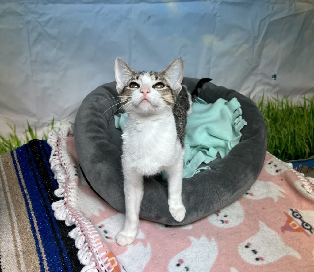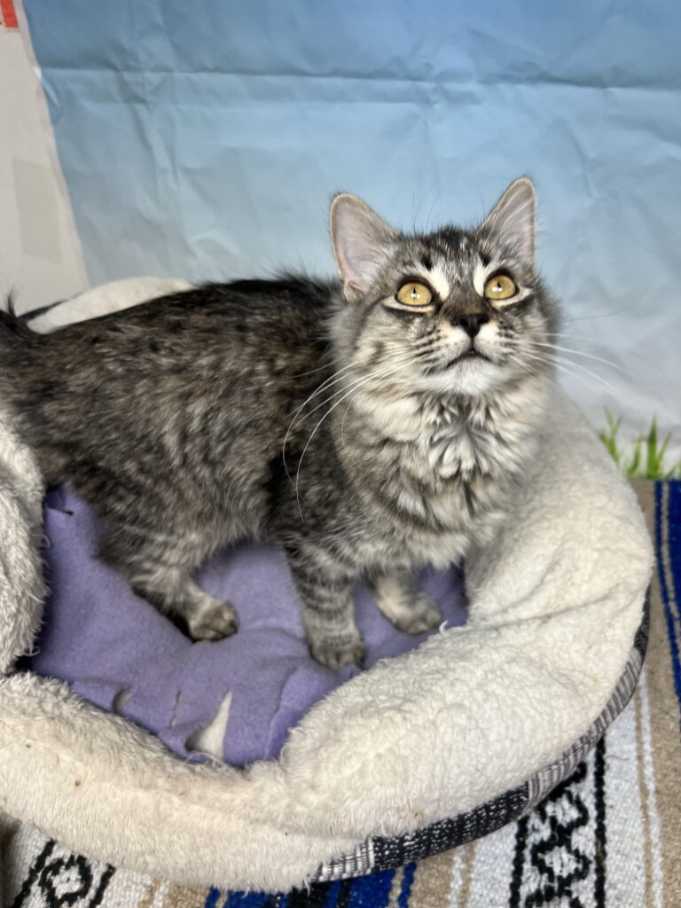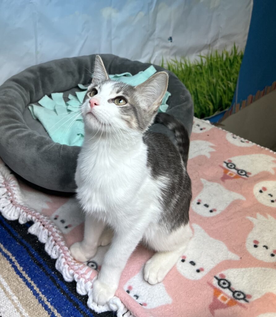 Kittens are less than 1 year old. All of our adoptable kittens have been spayed/neutered and given all the medical treatment necessary to give these youngsters a healthy start. Because all of our cats are spayed/neutered before adoption, we can’t adopt out any kittens until they’re old enough for surgery (3-4 months old).